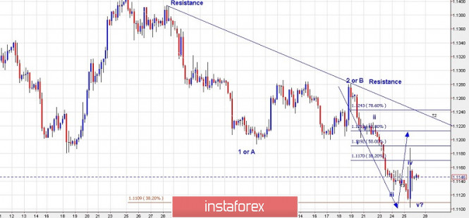 Pasangan mata wang EURUSD melakukan pergerakan menurun ke tahap yang lebih rendah di bawah 1.1107 seperti yang dijangkakan dan dibincangkan lebih awal. Kriteria minimum mungkin dicapai untuk mendapatkan bahagian yang bermakna atau mungkin satu lagi pergerakan harga yang lebih rendah. Dalam kedua-dua kes, harga perlu menghasilkan pergerakan anjakan sekurang-kurangnya ke arah 1.1220, jika tidak lagi. Melihat struktur gelombang, kebarangkalian harga mendorong ke tahap yang lebih tinggi sama ada sebagai penarikan semula atau ke arah tinggi perantara dilihat. Kami ingin menukar pergerakan harga kepada pergerakan menurun kami untuk sementara waktu dan memberi tumpuan kepada kemungkinan kenaikan harga di sini. Oleh itu adalah dicadangkan untuk membuka kedudukan beli terhadap 1.1100 dengan pengurangan harga ke arah 1.1120 sebagai kebarangkalian yang tinggi. Rintangan segera dilihat melalui tahap 1.1282 / 90. Sehingga harga kekal di bawah itu, kita boleh mengharapkan pasangan itu untuk membuat rendah. Penembusan harga di atas tahap 1.1282 menunjukkan potensi pembalikan kenaikan harga bagi jangka pertengahan.