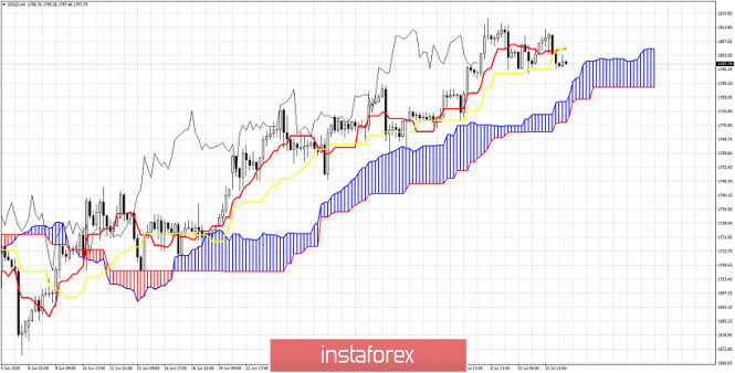 Harga emas kini berada pada tahap rintangan pada $1,805 dan aliran menaik perlu meningkat semula ke tahap itu untuk melonjak ke tahap baru. Sokongan dan sasaran penarikan semula jangka pendek berada di sempadan cloud menaik pada tahap $1,790. Penutupan harian di bawah tahap $1,790-85 akan membuka jalan untuk emas bergerak ke arah $1,755 dan ia berpotensi untuk mencapai kawasan $ 1,725-35 di mana kita menemui Kumo harian. Trend jangka panjang kekal menaik.The material has been provided by InstaForex Company -