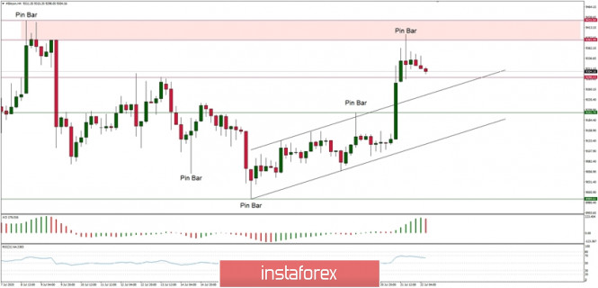 Pasangan BTC/USD telah menembusi di atas rintangan garis arah aliran jangka pendek dan bergerak ke arah zon bekalan yang berada pada tahap $9,381. Momentum di sebalik pergerakan itu kuat dan positif, tetapi corak graflilin Pin Bar telah dibentuk di bahagian atas pergerakan, oleh yang demikian, pasaran kini mengukuh dalam jarak harga yang sempit. Sokongan teknikal paling hampir dilihat pada tahap $9,290. Sekiranya tahap ini ditembusi, maka sokongan berikutnya akan terletak pada tahap $9,202. Penting untuk dinyatakan bahawa kenaikan harga mungkin akan dilanjutkan ke tahap $9,381 - $9,431.
