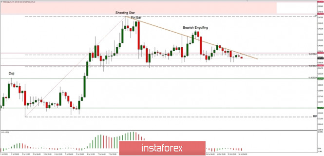 Walaupun pada hakikatnya, pasangan ETH/USD telah melonjak dari paras rendah tempatan pada AS$ 236.31, berada tepat di atas sokongan teknikal tempatan yang berada pada tahap AS$ 235.42, kenaikkan harga masih tidak dapat menembusi rintangan garis tren sekali lagi. Harga telah kembali di bawah garis tren dan pada masa ini berlegar-legar pada tahap AS$ 237. Sekiranya penurunan berterusan, sasaran seterusnya untuk penurunan harga dilihat pada tahap AS$ 232.04 dan AS$ 224.39. Sila ambil perhatian, momentum mula menurun juga selaras dengan tinjauan penurunan jangka pendek.