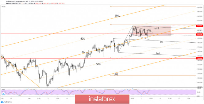 Kenaikkan selanjutnya hanya akan dibatalkan oleh penembusan harga yang sah di bawah Median Line (ML) dan jika harga membuat penurunan dari julat kecil, di bawah tahap $1,795.