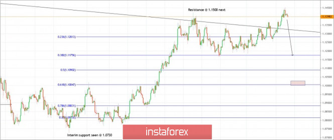 Pasangan EUR / USD berjaya keluar dari tahap rintangan yang ditentukan sekitar tahap 1.1420. Pasangan mata wang tunggal dilihat diperdagangkan sekitar tahap 1.1403 pada tahap ini secara bertulis dan boleh bersedia untuk penurnan harga yang lebih rendah ke tahap 1.1167. Rintangan segera dilihat pada tahap 1.1500, sementara sokongan masing-masing sekitar 1.1250. Kemungkinan kekal untuk mendorong harga ke arah 1.1500 terlebih dahulu sebelum membalikkan harga ke tahap yang lebih rendah, tetapi sila ambil perhatian bahawa EUR / USD telah mengukuh baru-baru ini ketika RSI menyimpang. Bearish divergence pada carta harian mungkin menunjukkan kemungkinan penurunan harga yang lebih cepat daripada yang dijangkakan. Walaupun penurunan harga dapat diperbaiki, EUR / USD dapat dilihat di sekitar tahap 1.1000, merupakan fibonacci 0.618 dari pergerakan sebelumnya,